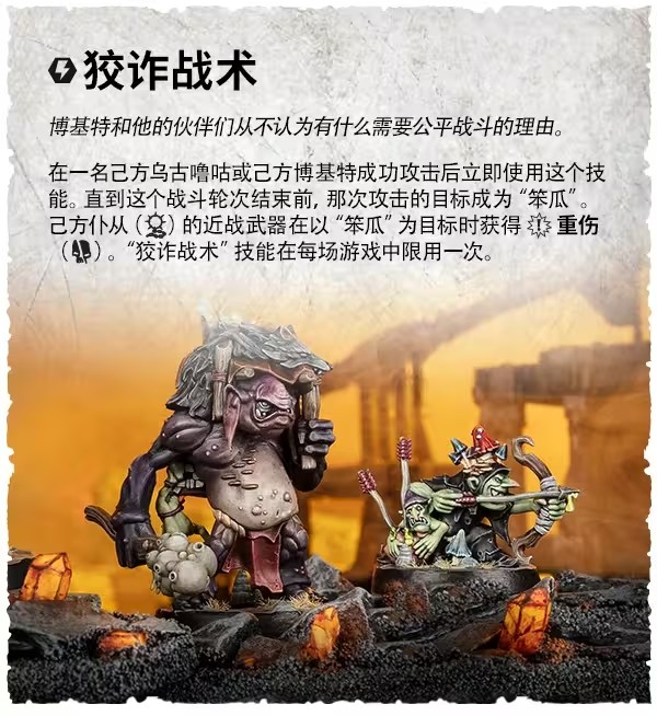 博基特的掠獸隊是由6名狡猾的地精所組成的小隊,他們在尋找巨怪之王,特魯格的蹤跡。儘管他們看上去孱弱無比,但卻憑藉著巧妙的計謀和陰謀詭計很好的彌補了這一不足。