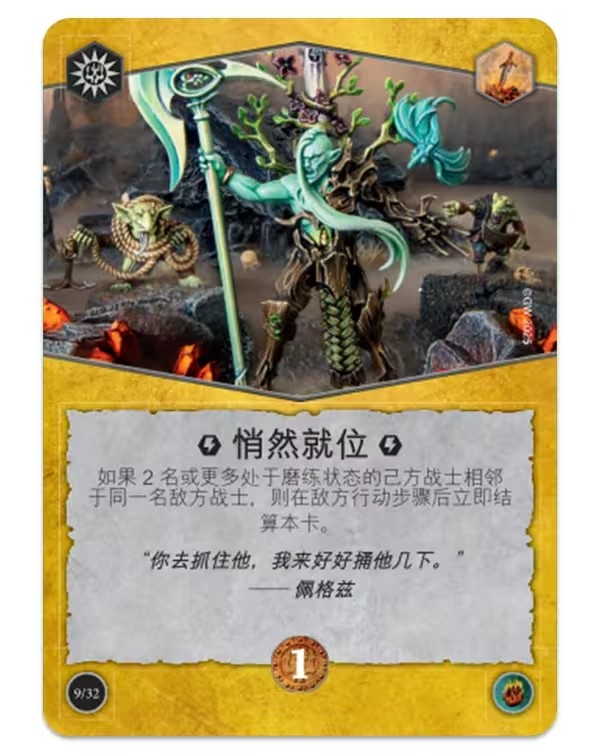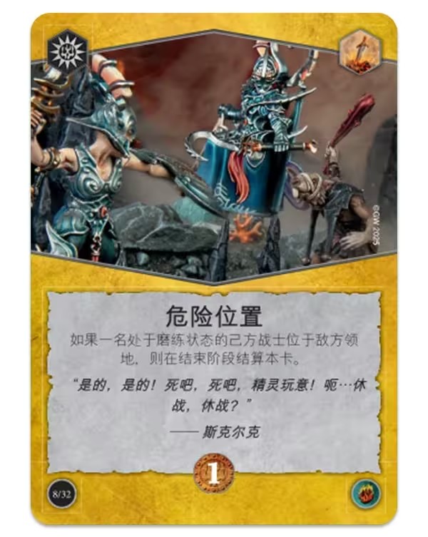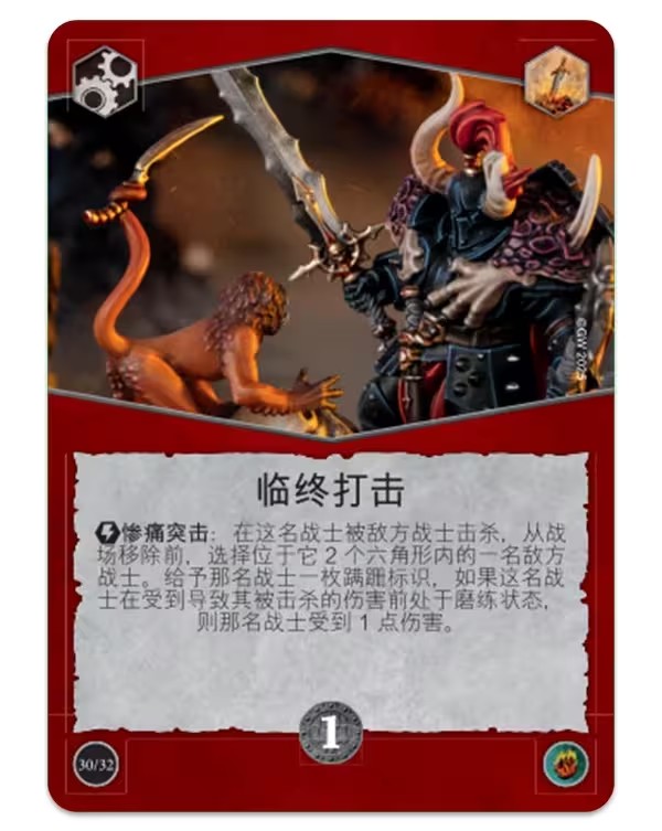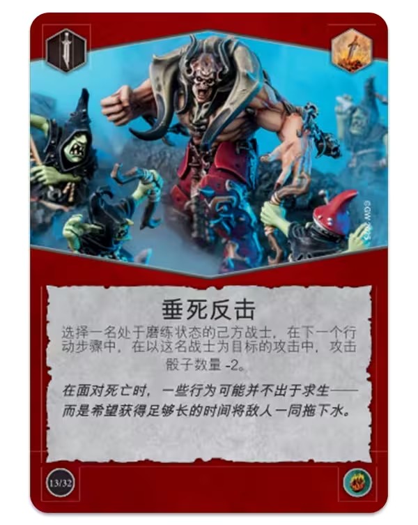 如此狡詐的戰術需要一副能夠獎勵卑劣戰術的對抗牌堆:《對抗牌堆:鋒刃邊緣》正是你所需要的。這是一幅具有靈巧風格的牌堆,針對那些生命屬性較低(或已經受傷)的戰士。情節卡片會賦予任何生命屬性為 2 點或更低的戰士處於磨練狀態,你可以利用牌堆中的卡片與這些戰士進行互動。悄然就位和危險位置這兩張卡片都會獎勵那些敢於讓弱小的手下前去冒險的玩家獲得榮譽點數,而類似於垂死反擊和臨終打擊這樣的卡片同樣會賦予獎勵,無論那些戰士仍然屹立不倒,又或者他們已經時日無多……
