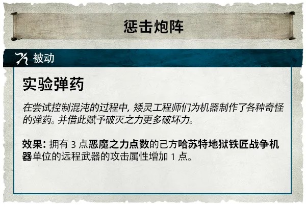 在核心打法上,哈蘇特地獄鐵匠是一支「移動堡壘」式的火力軍隊:以重裝步兵為盾,層層推進,再在後側展開熾烈的火力。他們依靠一套獨有的惡魔之力點數(DPP)資源機制,這些點數象徵驅動他們戰爭引擎的狂暴惡魔能量。