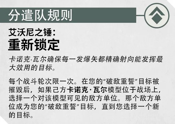 相比之下,卡諾克.瓦爾率領的鋼鐵之手則是一道由老兵組成的巋然鐵壁,他們以極端冷酷的作風祭出艾沃尼之錘,這一獨特變體基於現有的一連特遣隊分遣隊,卻更具鋼鐵之手的風格。鋼鐵連長那精於分析的頭腦,正是追蹤破敵重誓目標的利器,當他摧毀目標後,甚至能立刻重新鎖定新的獵物。