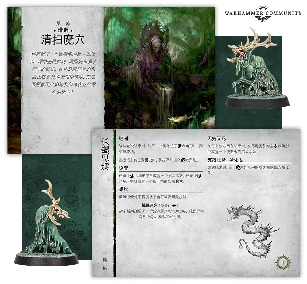 掃清魔穴發生在平鋪地圖冊的1號區域:英雄們抵達一口惡臭泥潭,腐爛的屍骸間,沼澤水妖正翻滾蠕動。唯有一戰到底,但記得先備只衣夾夾住鼻子,再戴副橡膠手套好收拾殘局。