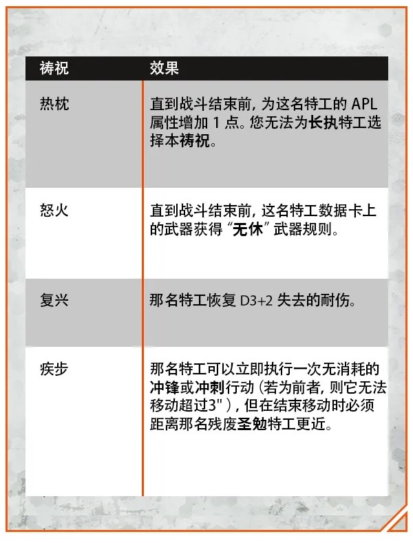一旦處於聖勉狀態,潔天使們的另一種核心技能也隨之觸發,殉道。你該不會以為一支戰鬥修女小隊會沒有經典的殉道戲碼吧?若一名已處於聖勉的特工壯烈犧牲,6英吋內的一名戰友將被點燃,並從四項禱祝中任選其一:有的能癒合傷口,有的能讓 APL直接上漲1點,效果各有不同。
