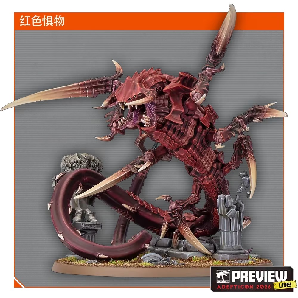資深泰倫蟲族指揮官或許還記得舊版《戰鎚40,000》《聖典》中的紅色懼物。如今它以首款獨立塑膠套件回歸,使銀河再度陷入恐懼之中。這條巨大的蛇形怪物擁有獨特技能:通過吞噬生物質再生損傷,且能潛入殺戮區地下潛伏隱匿,直至準備好出擊、生吞你的特工。
