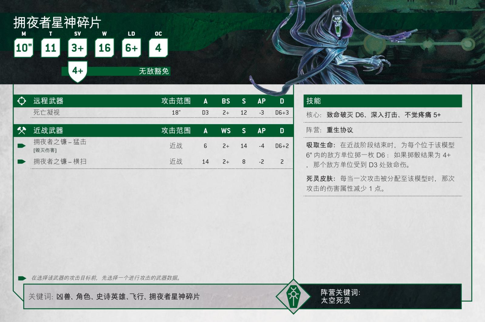 說到這種喜歡近身肉搏的角色,再沒有比一個身披斗篷、揮舞巨大鐮刀的恐怖巨像更貼切的象徵了。擁夜者星神碎片的多項屬性得到了提升,以呼應其體型更大、更壯觀的新模型,因此它的移動速度提升,也能承受比以往更多的傷害。