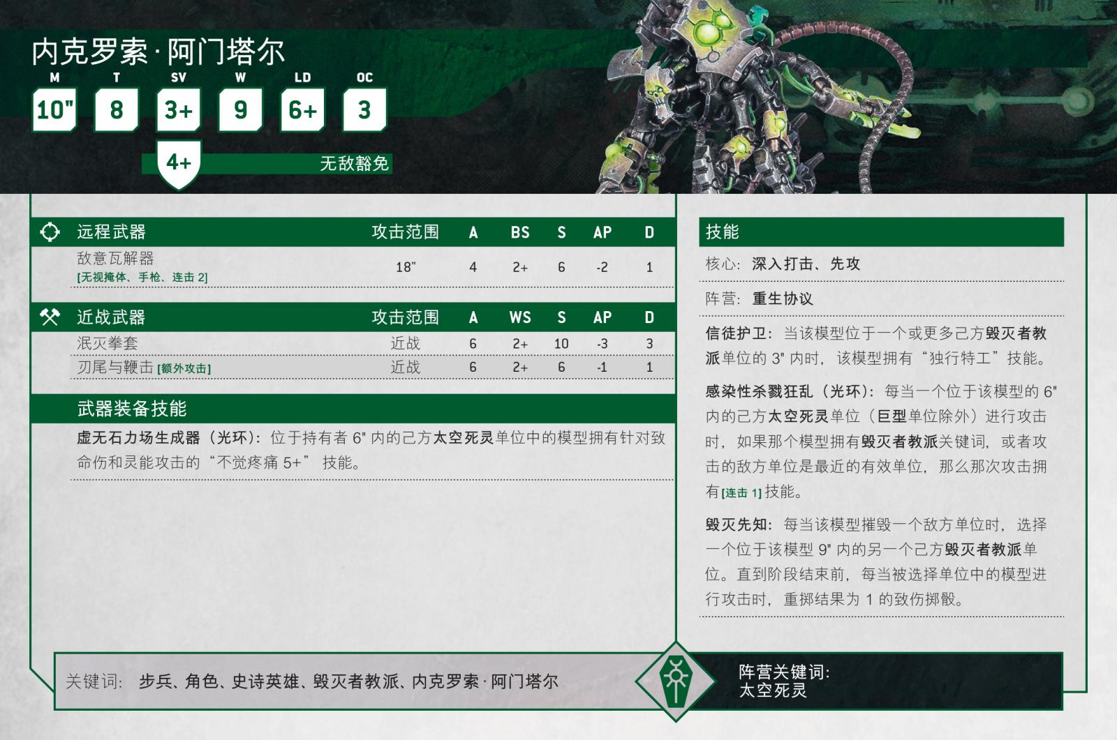 除此之外,內克羅梭正是你對一個毀滅者教派打手所寄望的一切,快速、堅韌、致命。它是一個全方位的強者,特別適合那些以近戰單位為主的太空死靈軍隊。