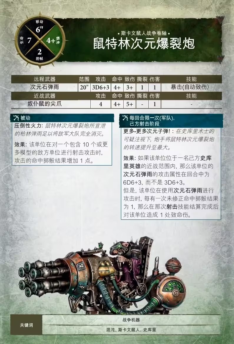 從充滿毒氣的球體到灼熱的次元石烈焰,史庫里氏族都站在進行大規模殺傷的最前端,而鼠特林次元爆裂炮更是他們最新的畸變創造。