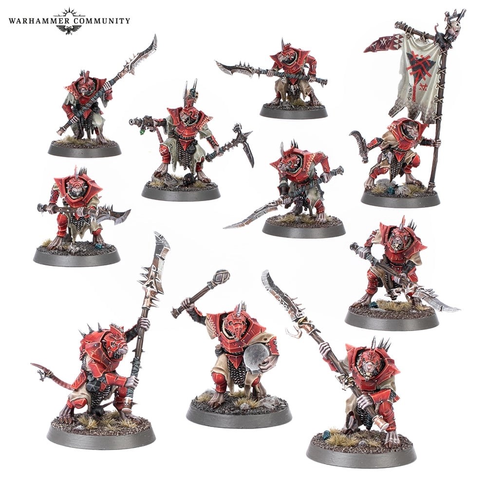 斯卡文鼠人集結了2支強大的先鋒軍部隊,其中一種在終極起始套裝內,而第二種是全新推出的次元電光爪群,包含了25個微縮模型,包含了1個經典造型的灰先支,領導著3隻風暴鼠魔,融合了莫德爾氏族實驗品和史庫里科技,1台次元閃電炮,以及20隻全新的氏族鼠。您可以在戰鎚世界上找到免費下載的此先鋒軍的規則,也可以直接把他們作為增援加入到您的軍隊。