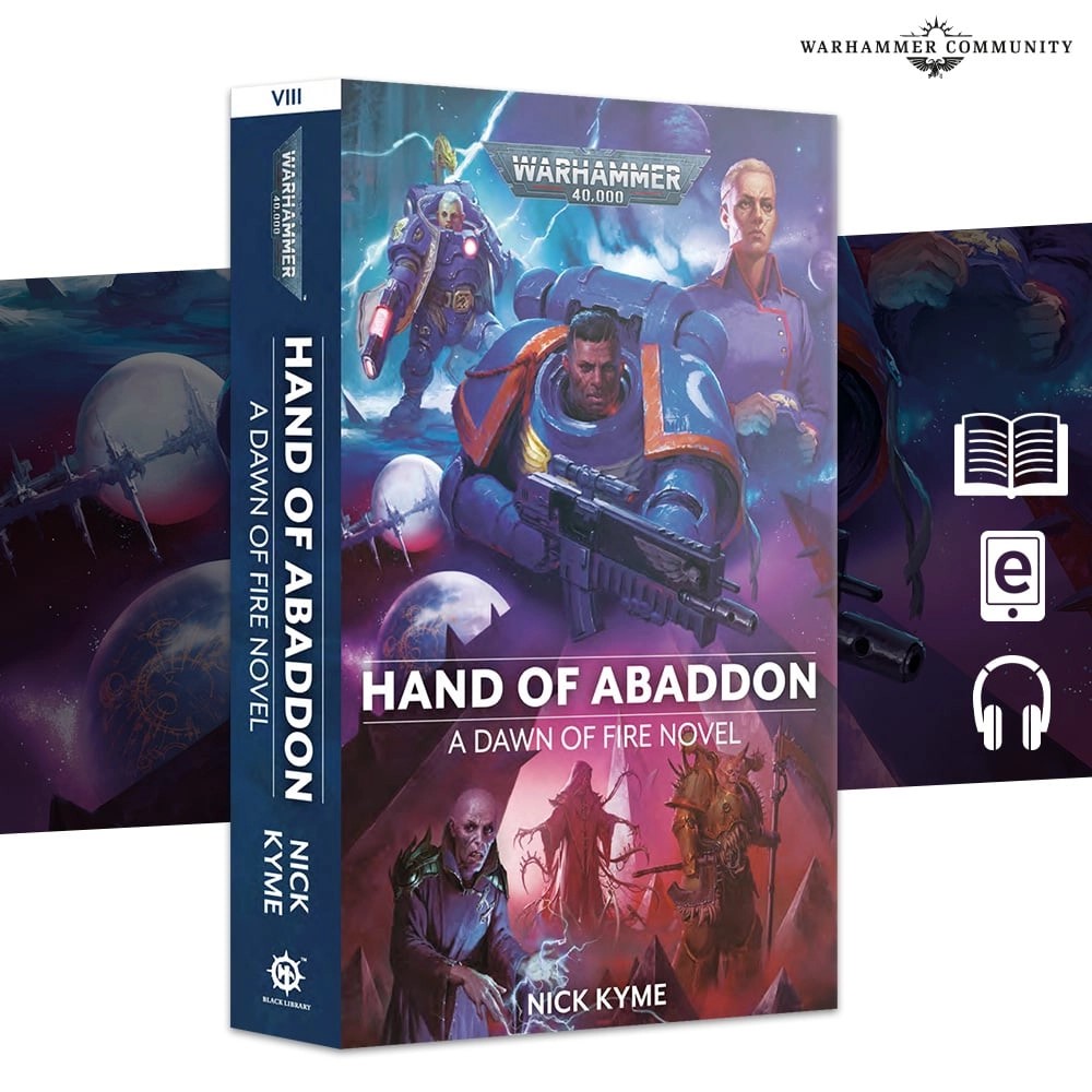 《烈火黎明》系列的第八本,也是倒數第二本登場。惡名昭彰的阿巴頓之手正在緩慢而堅定地實現一個神祕陰謀,而其他混沌特勤則在尋找可能會決定整場戰爭結果的遠古邪惡。Nick Kyme撰寫的《Hand of Abaddon》將以標準平裝書形式發售,帝國與混沌之間的戰爭讓每個人都陷入了可怕衝突中。