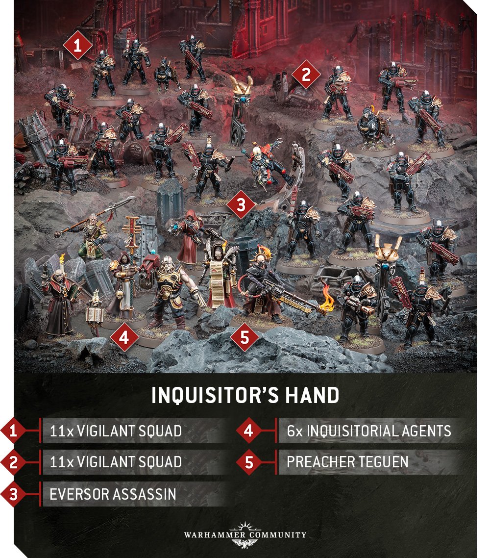 戰鬥巡邏隊審判官之手由牧師特根領導,她是狂熱的信徒和神皇的忠僕,並配備了一個懲戒焰炬。一隊審判庭特勤會攜帶著各種強大的武器追隨她,用重型爆彈槍在遠處撕裂輕型裝甲的敵人,然後由專門司職近戰的專家在近距離戰鬥中與特根並肩砍殺。