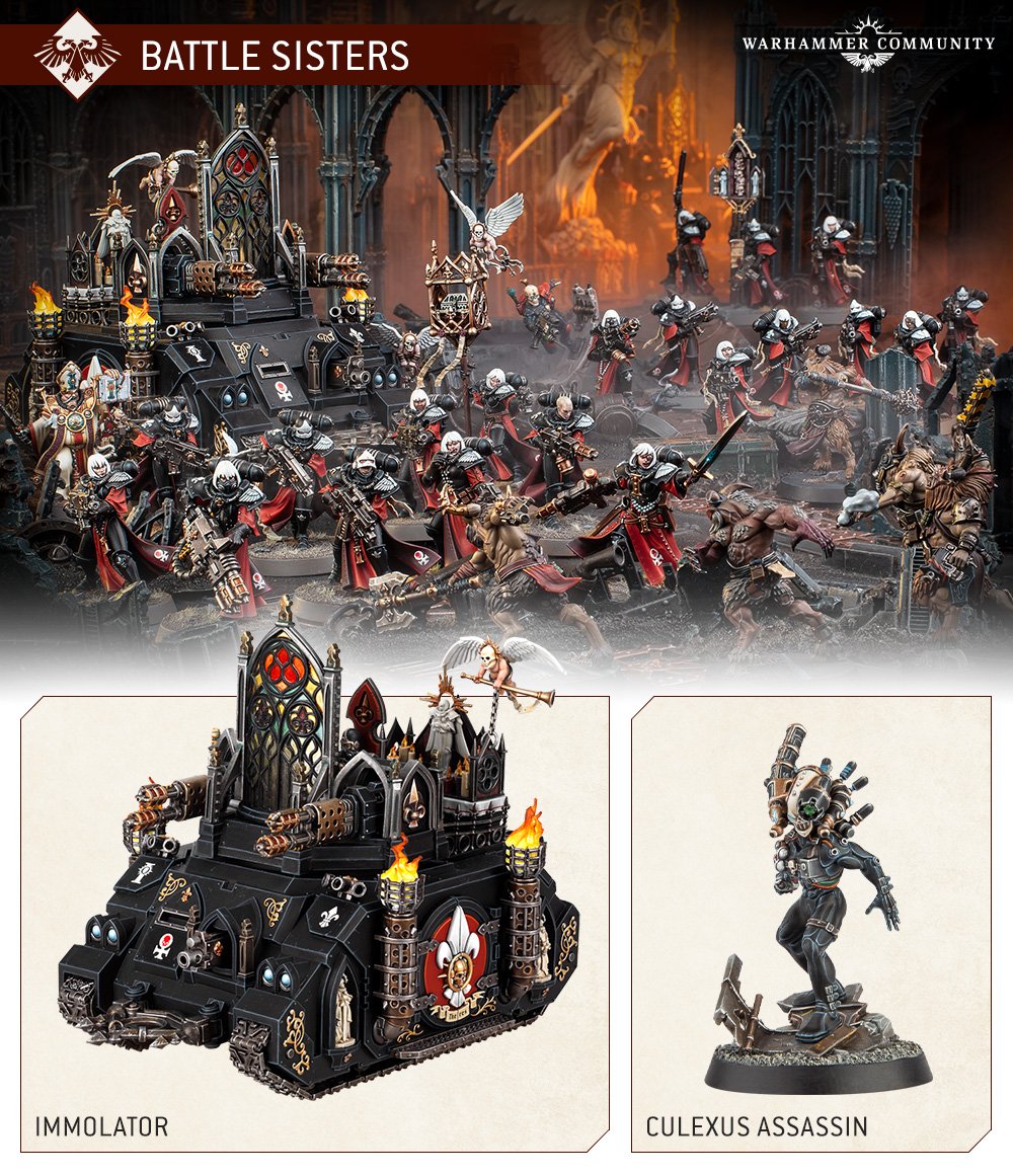 獻祭者裝甲車既是戰鬥修女小隊的快速運輸載具,也是一台靈活的火力支援坦克,可以用來摧毀人數眾多的集群單位或重型裝甲載具。異端審判庭被派遣前去執行許多反靈能者的任務也使他們成為丘里克斯刺客的理想所在,這是一種不可阻擋的殺戮機器,對各種靈能者和巫師來說尤為致命。