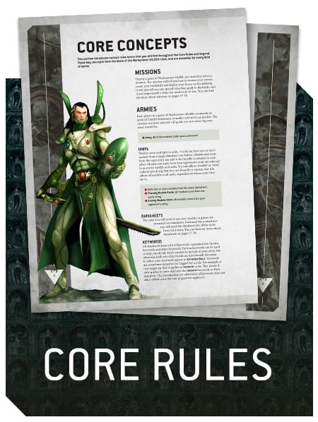 你的首要選擇便是《聖典:帝國特勤》,其中包含了大量的背景故事和華麗的微縮模型的展示,以及26個不同單位的規則和許多不同的遊戲方式。再加上一本《戰鎚40,000》核心規則書,你將擁有開始遊玩《戰鎚40,000》正常規模遊戲所需的所有規則。