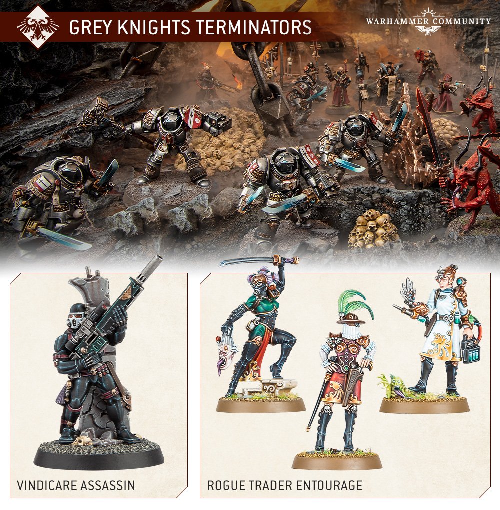 最後,惡魔審判庭的惡魔獵手團隊經常會遇到大魔原始和瘋狂力量的影響,只有灰騎士終結者有力量和意志能夠將他們驅趕回到亞空間之中。他們標誌性的深入打擊往往能夠幫助他們更順利地接近目標,並利用各種天罰武器和風暴爆彈槍發起攻擊,而揮舞著聖物旗幟的旗手和藥劑師更可以提升他們在任務中的生存能力。