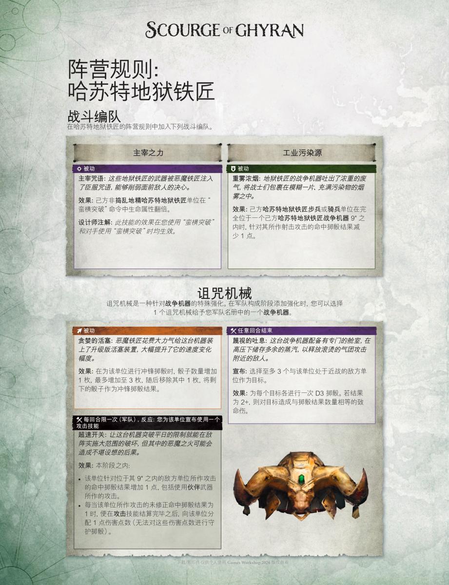 耶誕節即將到來,我們也將慶賀最新的陣營來到凡世諸域。哈蘇特地獄鐵匠一向不熱衷於饋贈,秉持著勞作報償的信條,但他們還是不情不願地備下了蓋伊嵐浩劫的規則,如今終於與凡世諸域的其他陣營平起平坐。