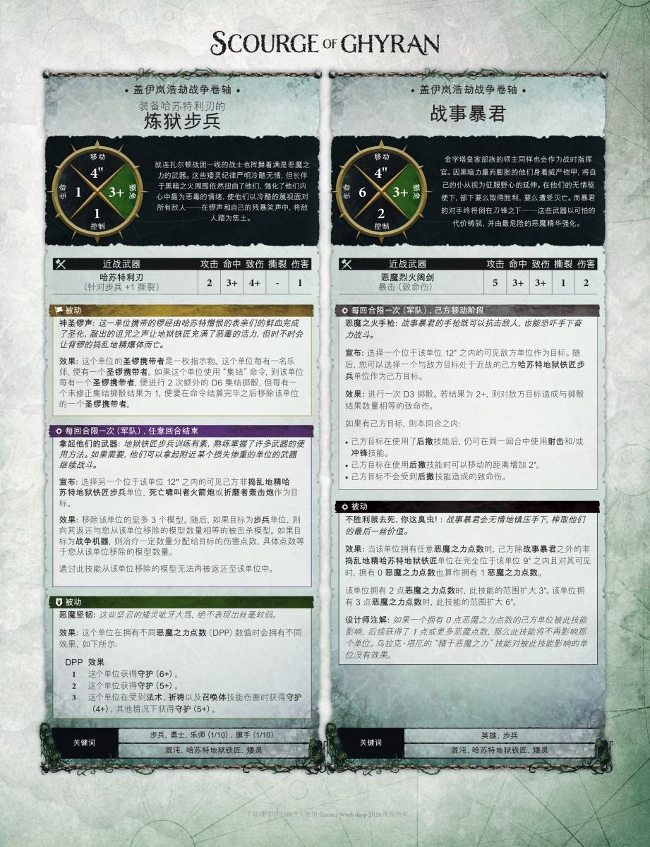 戰事暴君與惡魔鐵匠如今可安心了,他們已經獲得哈蘇特賜予的全新力量。怎麼拖了這麼久?最好別問,他可不是那種講理的貨色。關於《蓋伊嵐浩劫》規則,幾張戰爭卷軸意外走紅,戰鎚設計組知道大家玩得不亦樂乎。他們正參考這些最受歡迎的單位以及諸位回饋,謀劃《戰鎚西格瑪時代》的未來。