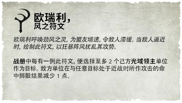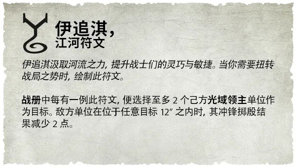 一位亥爾熙符文大師能夠繪製正確的符文來應對當前局勢。在每個戰鬥輪次開始時,你將在戰冊中繪製五種符文之一。這些符文將立即賦予戰場上最多兩個友方單位力量。隨著戰鬥推進,你可以多次繪製同一符文來增強其力量,從而讓更多單位受益於其效果。