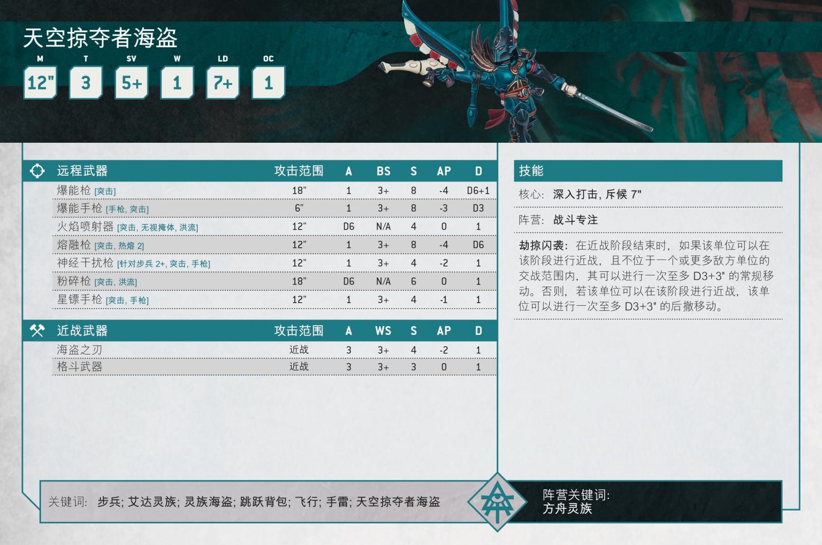 就第41千年的太空旅行危險來說,被艾達靈族海盜入侵並不是常見事件,但一旦發生,你可就真的大難臨頭了。他們獨特的打帶跑戰術將極速部隊與天才戰略結合在一起,其中許多戰術由史上最偉大的海盜艦長,駭人劫掠者的伊瑞爾親王所開創。