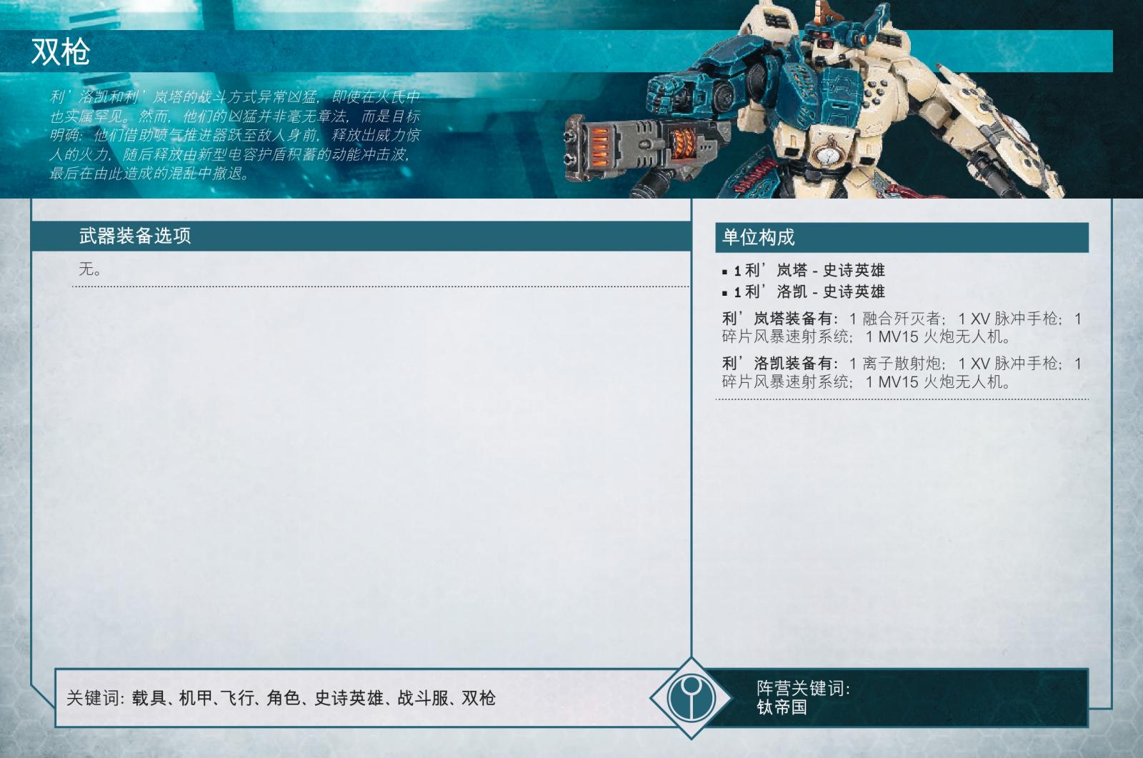 這對典範戰鬥服駕駛員並非生來就是致命一擊的化身,但在經歷一場涉及基因竊取者族主與他們倆的隊長內臟的慘烈事件後,他們開始出現殘酷的侵略性,抓住任何機會在近距離殲滅敵人。關鍵在於,與他們聲名狼藉的前任不同,他們無需魔法劍,只需持續射擊。