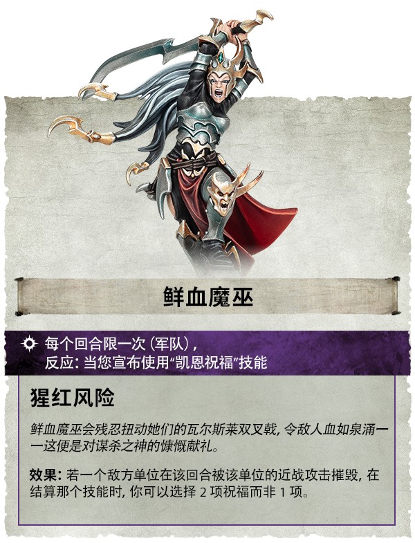這些祝福的靈活性意味著你總能在恰當時機使用最合適的那一個。如果你無法抉擇,想要選擇兩種祝福怎麼辦?全新的鮮血魔巫可以在這裡助你一臂之力,她們的猩紅風險技能將為你帶來更多靈活性。