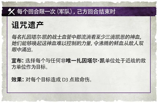 凱恩不問世事,唯血是求!*若你的軍隊在競技場中凱旋,你將獲得超強賦能,追獵殘敵至最後一刻,若敵人占得上風,你的倖存者亦將準備好進行光榮的最後一搏。若有英雄在競技場中落敗,甚至可借狂暴恢復浴血重生。